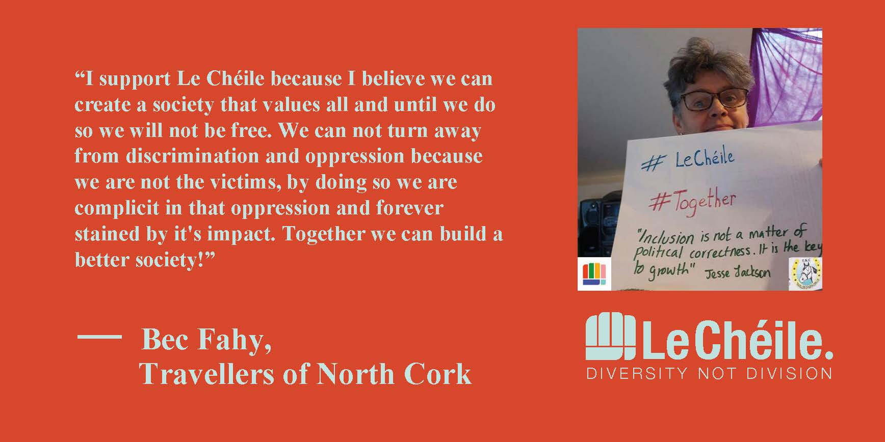 Taking a photograph of yourself holding a sign (written or printed) with the hashtags #LeChéile & #DiversityNotDivision, for us to share on social media - or any other kind of creative content of your choice.